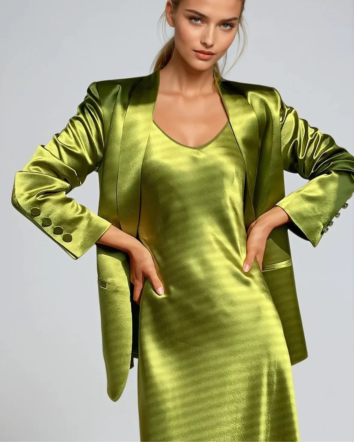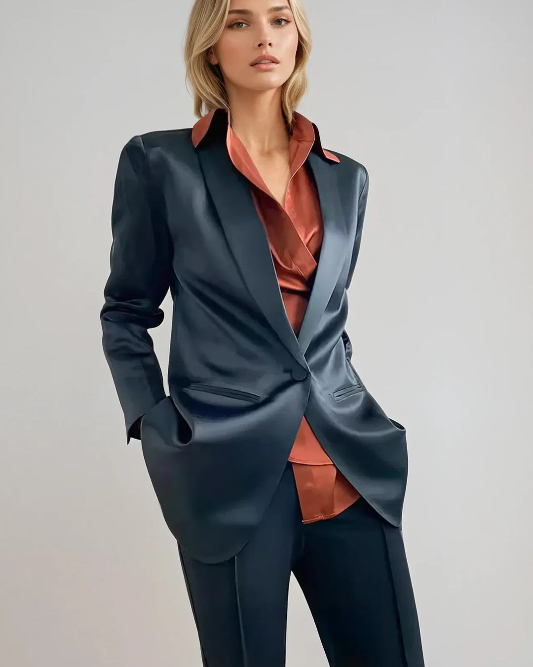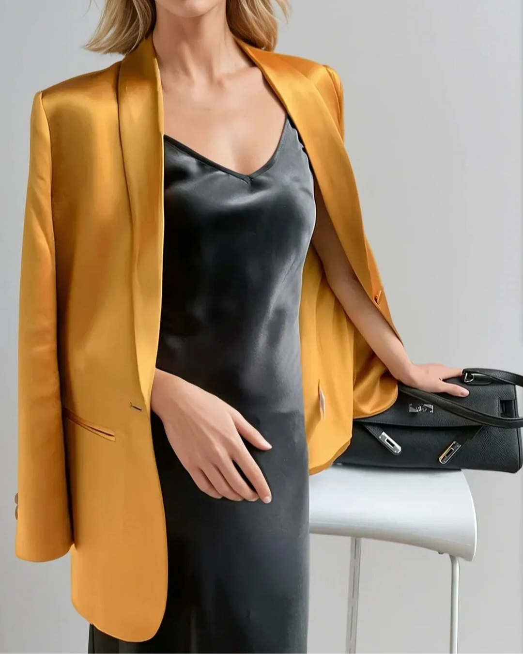 Le Blazer En Satin est la pièce idéale pour sublimer une tenue en un seul geste. Porté sur une robe, un jean ou un pantalon habillé, il apporte une touche de raffinement instantanée, sans jamais compromettre le confort.