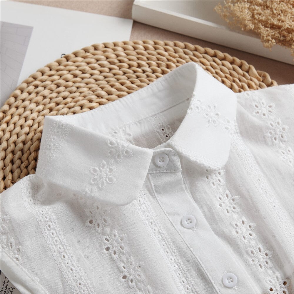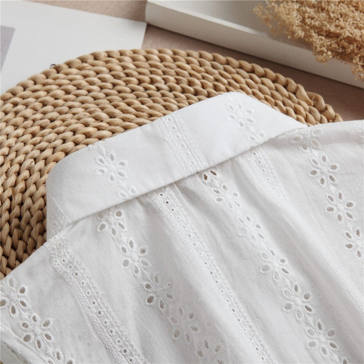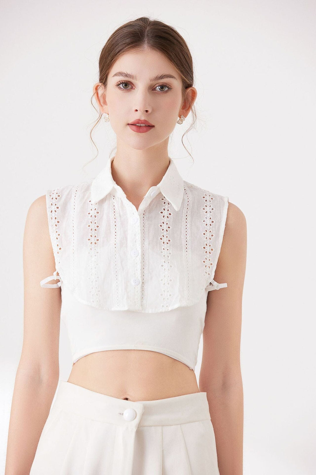 Col chemise en dentelle, plusieurs modèles disponibles (pointu, claudine ou semi montant), avec boutonnage devant. Se porte en dessous d'un pull ou un gilet. Facile à enfiler et à retirer, élastiques sur les côtés pour un bon maintient Confectionné en 100% coton. Qualité prémium.