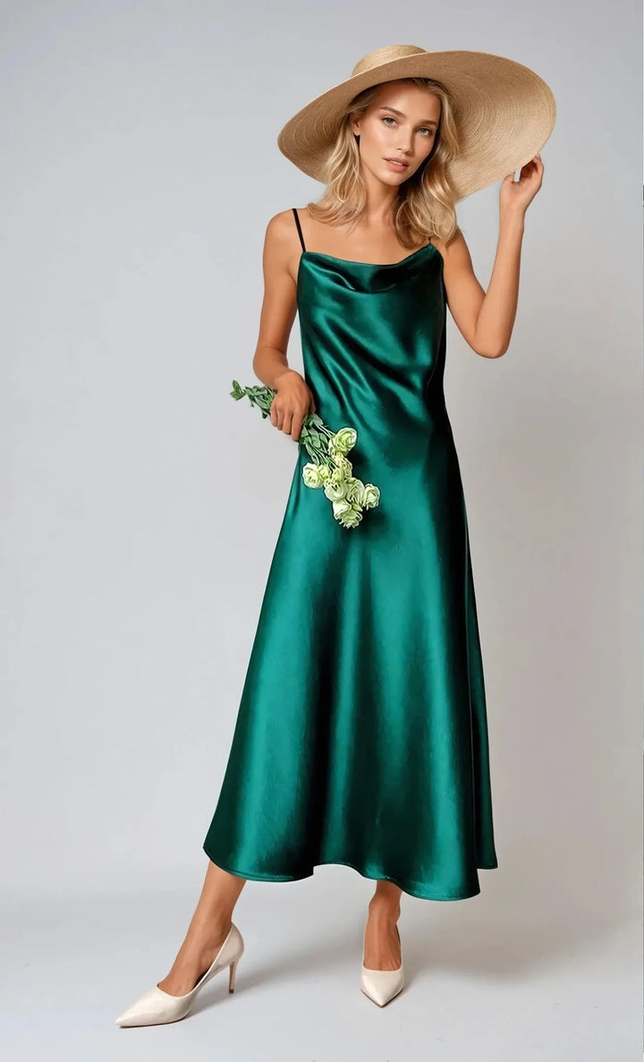 La Robe Cocktail En Satin coche toutes les cases : élégante, flatteuse, confortable et abordable. C’est la robe parfaite pour briller en toute simplicité, et la pièce à avoir sous la main pour chaque invitation spéciale.