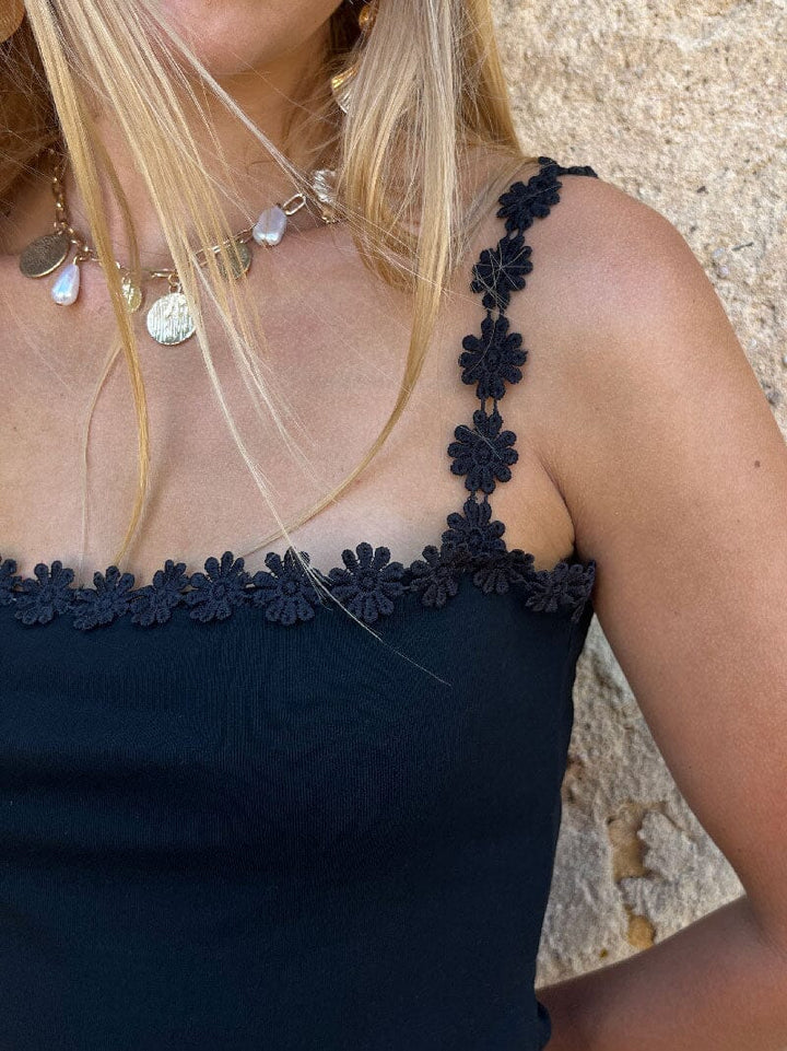 Bordée de dentelles fleuries en haut et sur les bretelles, elle ajoute une touche romantique et féminine à votre look.