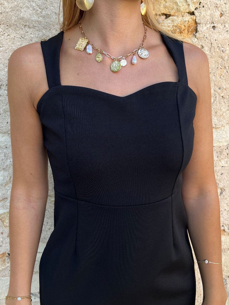 Son décolleté marié à ses bretelles larges permettent de mettre en avant la silhouette tout en affinant les épaules. Tout a été pensé pour apporter une allure maintenue, affinée et raffinée.