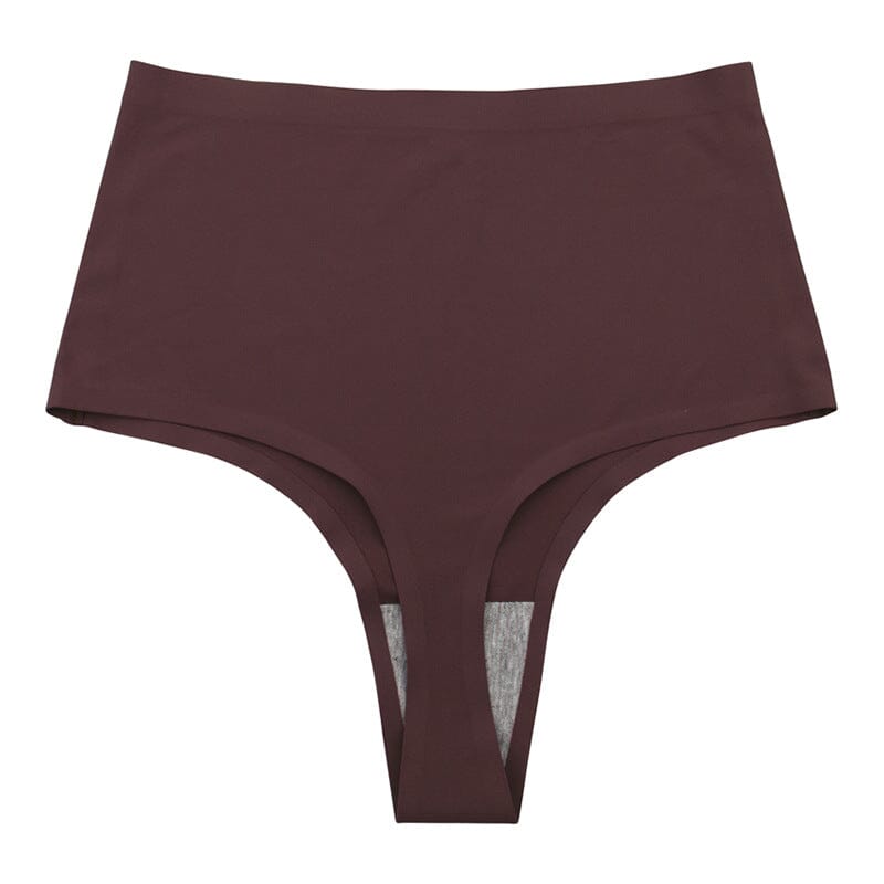 tanga taille haute maurine en tissu marron de qualité, offrant confort et style pour un look élégant et moderne