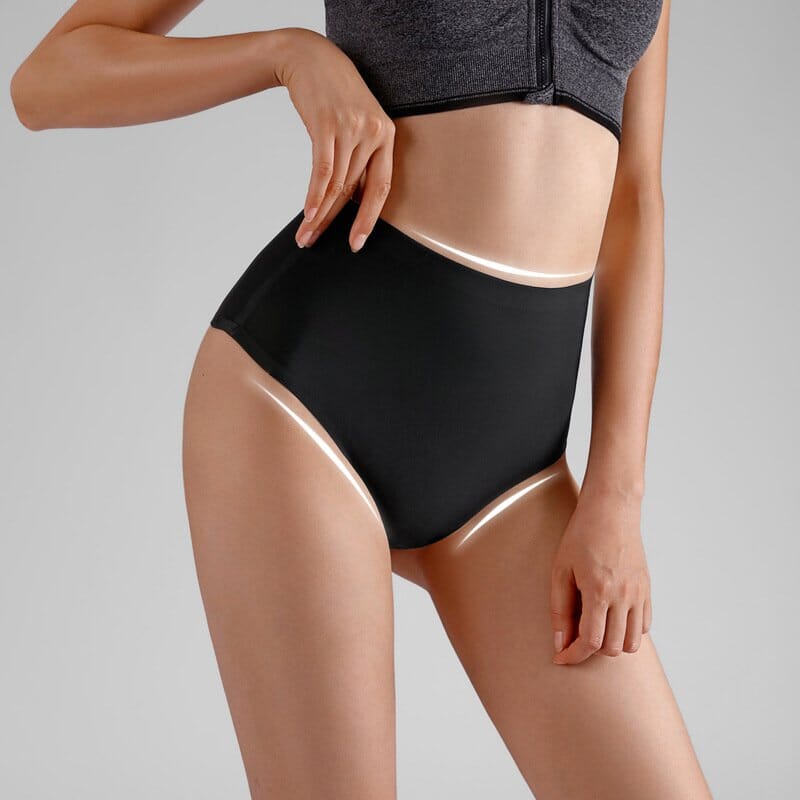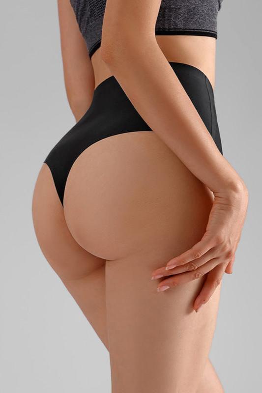 tanga taille haute maurine en noir porté par un mannequin, lingerie élégante et confortable pour un style moderne